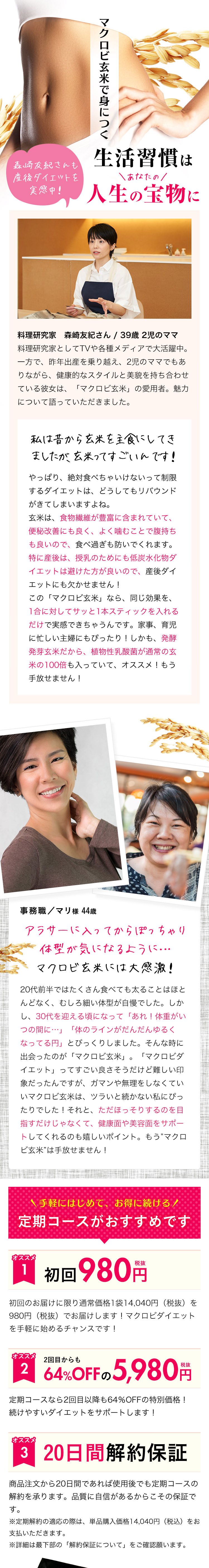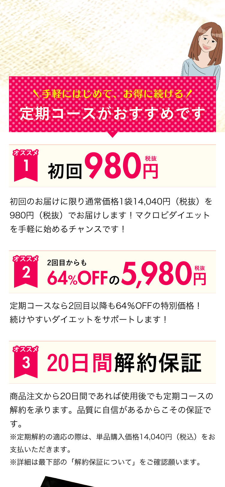 - 理想の体型をキープしたい方、サプリメントでのダイエットに挫折した方、美しく健康的な毎日を目指す方の生活のサポートにおすすめです。