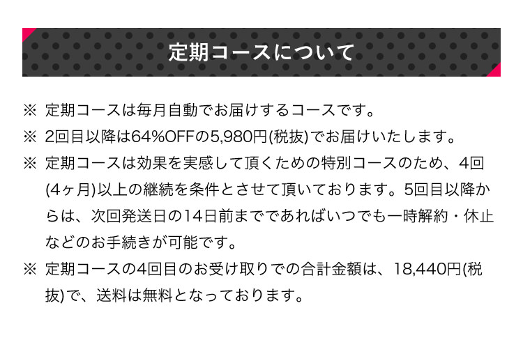 - より多くのお客様に安心してご利用いただくために、解約保証を導入しております。実感してリピートしていただける自信があるからこその保証です。